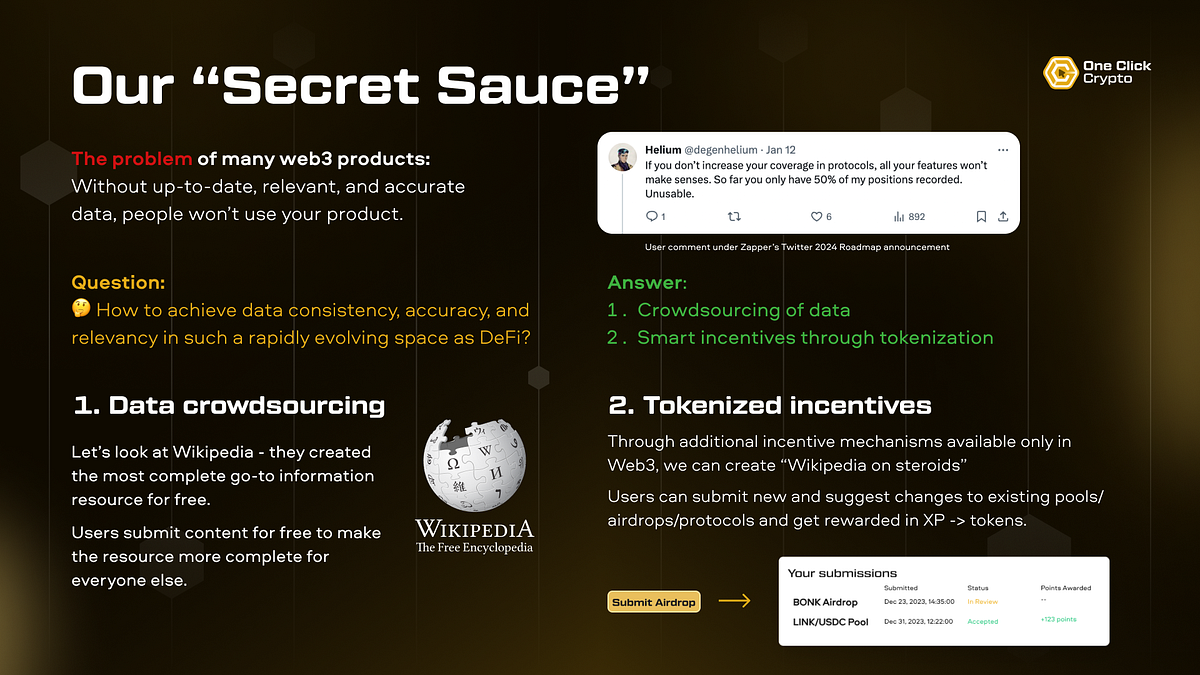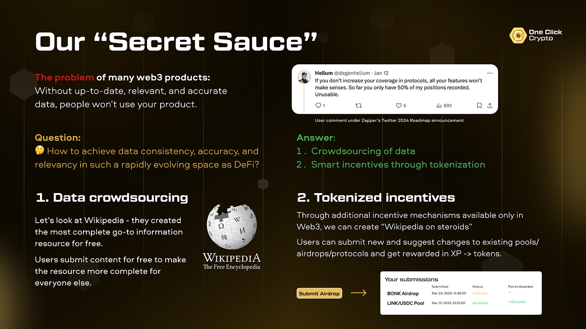 At One Click Crypto, we’re tapping into that same collective force to ensure the data is the most accurate and current in the DeFi space.