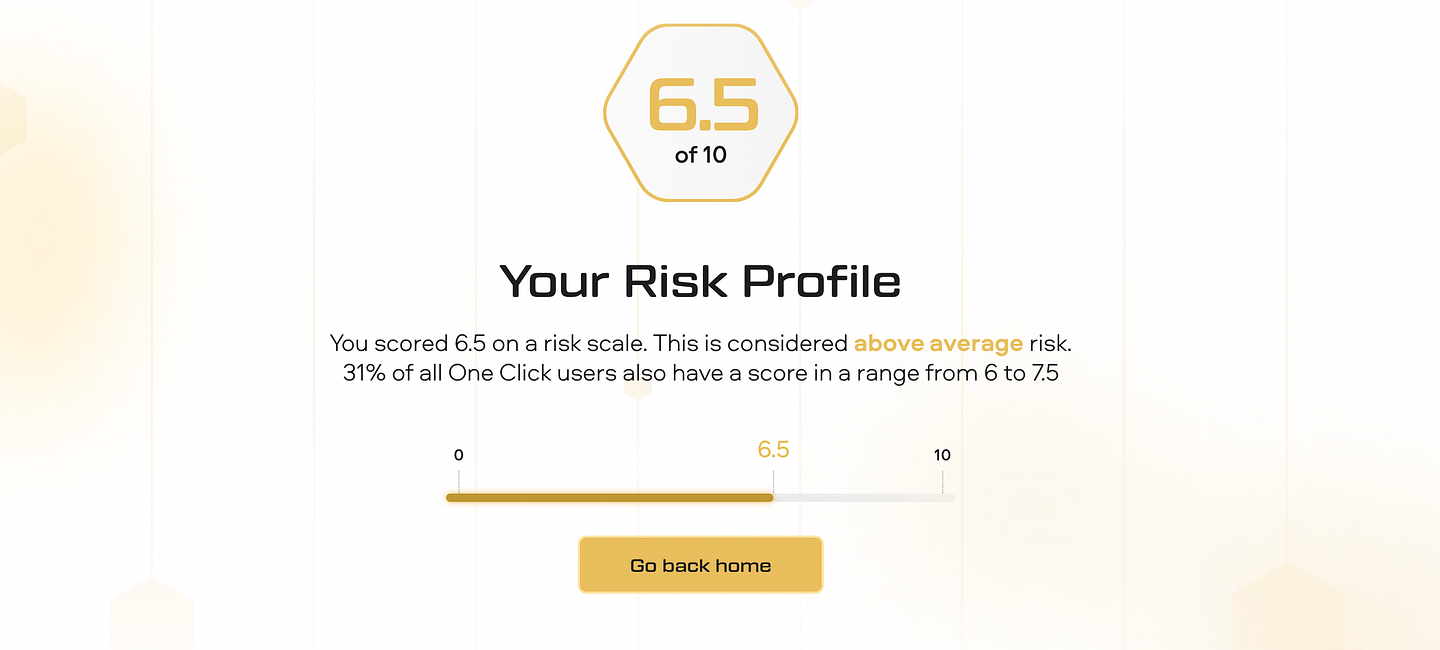 The One Click Crypto questionnaire is similar to the onboarding process done in traditional robo-advisors like Wealthfront or Betterment. Before recommending a portfolio, the system needs to understand the end user’s risk preferences.
