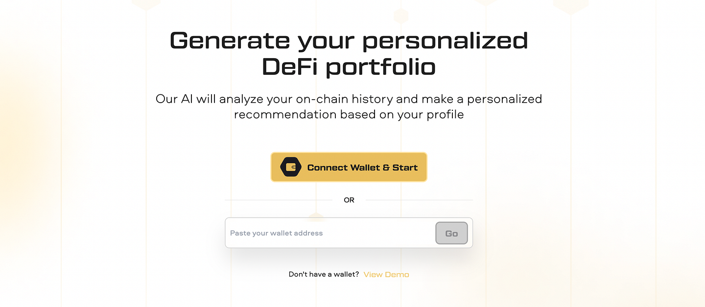 Blockchain data parsing and analytics: The model also takes into account the user’s on-chain interaction history with protocols and assets to generate a more personalized portfolio.